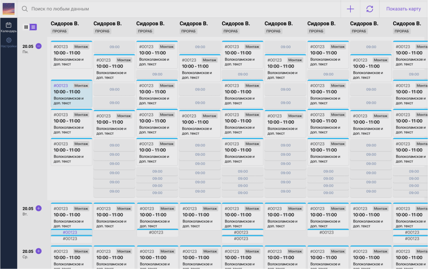 Процесс распределения монтажей не занимает много времени. Единый календарь работ по монтажным бригадам. Равномерное распределение монтажей. Контроль незавершенных объектов. Контроль сроков выполнения работ.